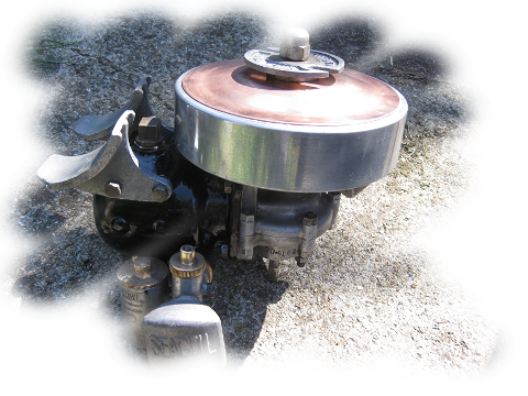 The SD model, the studs that hold the cylinder block on are on the crank case, later model 102's will have the studs on the cylinder block.This has the copper flywheel cover, aluminium tank mounts and brass air intake trumpet,